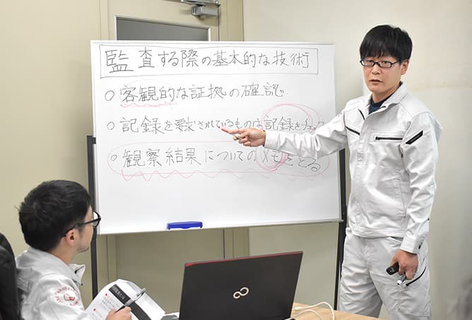 活動をはじめた当時の私は入社2年目で、それまで会話がなかった従業員もおり、どうやってチームをまとめるか非常に悩みました。まずは相手を知ること、自分を知ってもらうために、コミュニケーションをとることに重きを置きました。更には現場の知識も不足していたので、直接工場に足を運び、仕事の流れを自分の目で確認し、実際に作業を行いました。また、FSSC取得に際し、チーム全体で勉強会を定期的に開催しました。はじめは、抵抗や戸惑いがあるメンバーもいましたが、だんだんとチーム全体がまとまっていくことを実感しました。