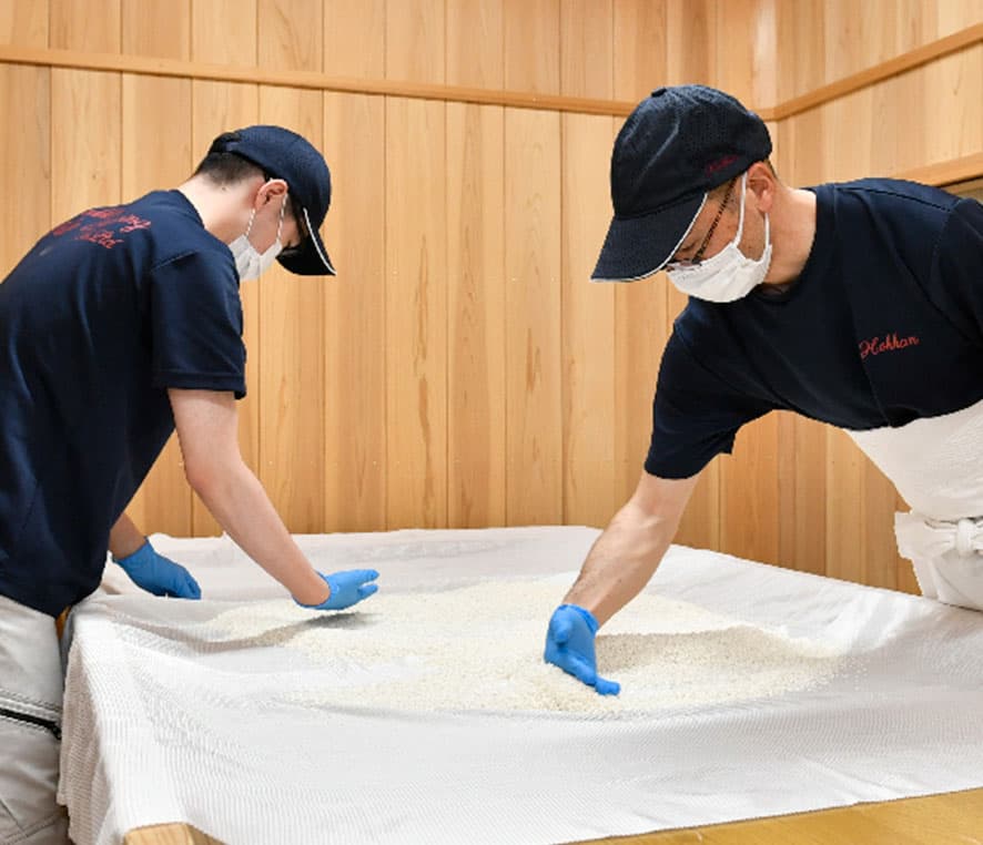 杜氏を筆頭に、蔵人たちが一丸となって、日々変化するお酒に、真剣に耳を傾け、時には迷いながら、最後は最高のお酒が完成すると信じ、日々お酒造りに邁進しております。